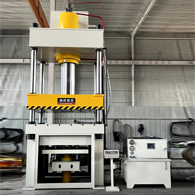 400T四柱拉伸液壓墊液壓機采用三梁四柱式結構,由上梁、滑塊、工作臺等組成,四柱支撐穩固,可承載400T壓力,適配高精度高壓場景;工作臺內置液壓墊與導桿,前者提供反向壓力防拉伸起皺,后者保障運動精度。其工作原理為油泵(齒輪泵/葉片泵/柱塞泵)供能,經控制閥調控液壓油流向、壓力與流量,驅動主缸(滑塊拉伸)與液壓墊缸(輔助壓力)作業,油箱、濾清器等輔助系統穩定運行,以礦物油傳遞壓力。性能參數上,公稱壓