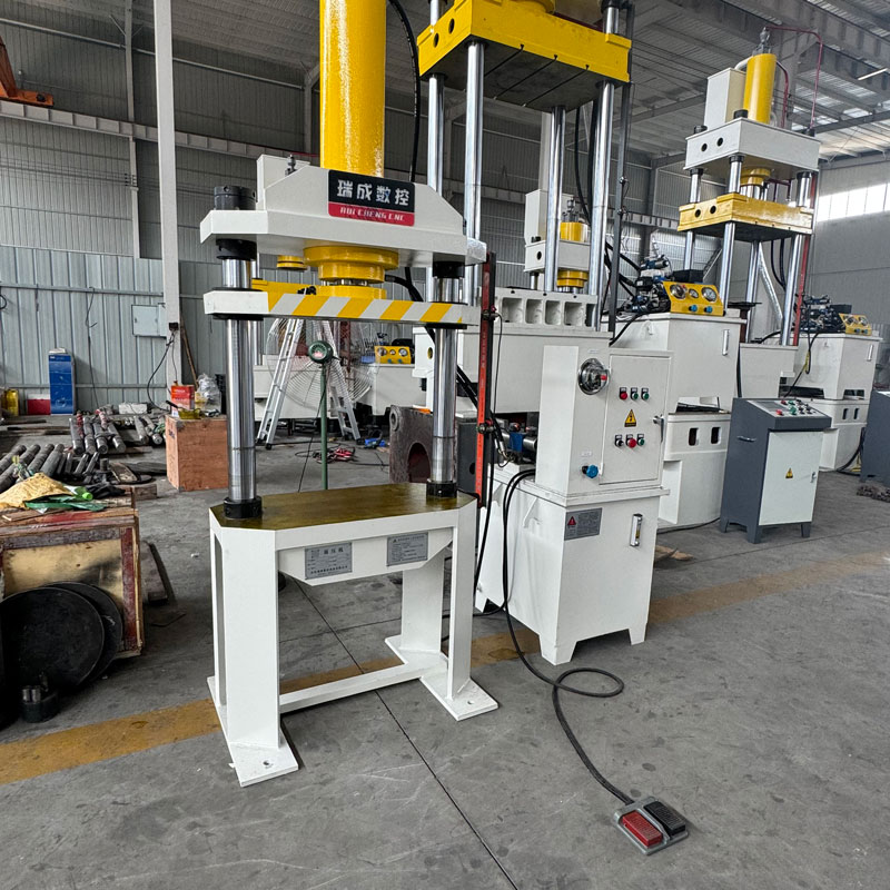 三梁兩柱液壓機主要由三個橫梁和兩根立柱組成。橫梁包括上橫梁、活動橫梁和下橫梁。上橫梁固定在立柱頂端,為整個設備提供穩定的支撐?;顒訖M梁位于上橫梁和下橫梁之間,可在液壓作用下沿立柱上下移動,實現對工件的加壓操作。下橫梁通常固定在地面或基礎上,起到承載和穩定的作用。兩根立柱則貫穿三個橫梁,保證設備在工作過程中的結構穩定性和精度。