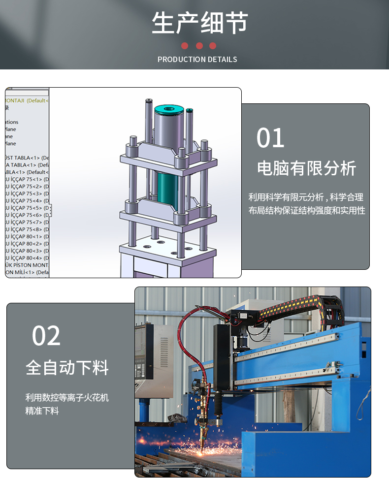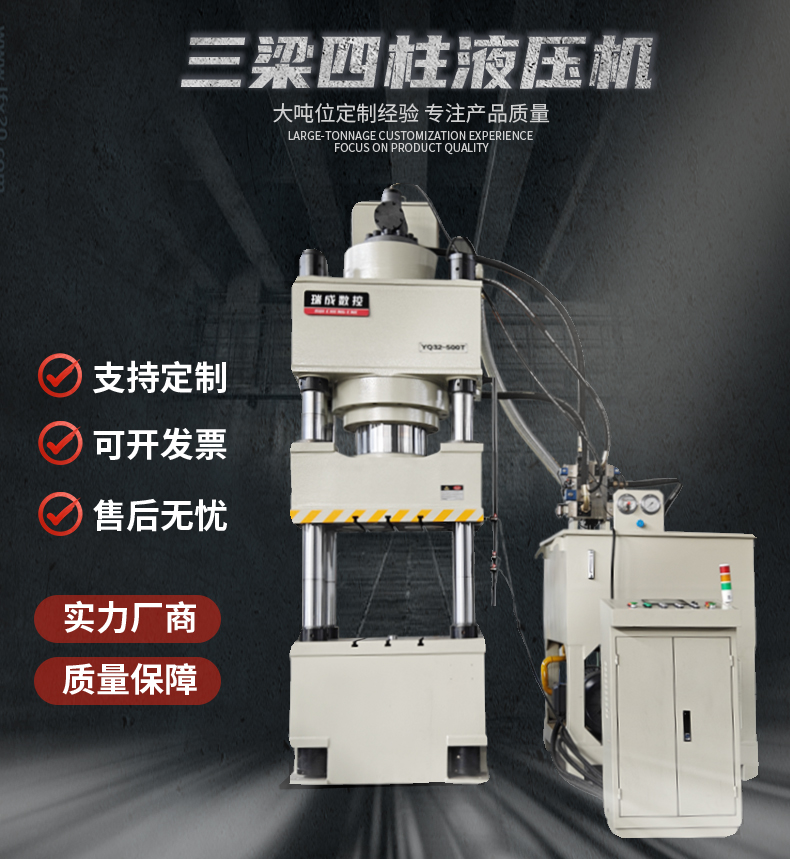 兩梁四柱是液壓機的一種常見結(jié)構(gòu)形式,其中 “兩梁” 通常是指兩個橫梁,“四柱” 是指四個立柱。這種結(jié)構(gòu)可以為液壓機提供穩(wěn)定的支撐和導(dǎo)向,保證在工作過程中活動部件(如滑塊等)能夠平穩(wěn)、精確地運動,以滿足對工件進行加工的精度要求。移動工作臺則是該液壓機的一個特點,它能夠在一定范圍內(nèi)移動。這種設(shè)計具有以下一些優(yōu)點:方便上下料:操作人員可以將工作臺移動到合適的位置進行工件的安裝和拆卸,提高工作效率,尤其對